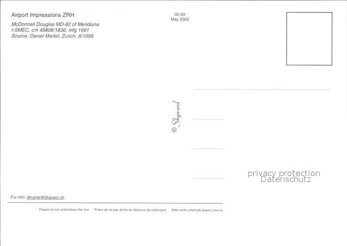 Flugzeuge Zivil Meridiana McDonnell Douglas MD-82 I-SMEC c/n 49808 postalisch nicht gelaufen Erhaltung siehe scans