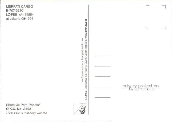 Flugzeuge Zivil Merpati Cargo B-707-323C LZ-FEB c/n 19584 postalisch nicht gelaufen Erhaltung siehe scans