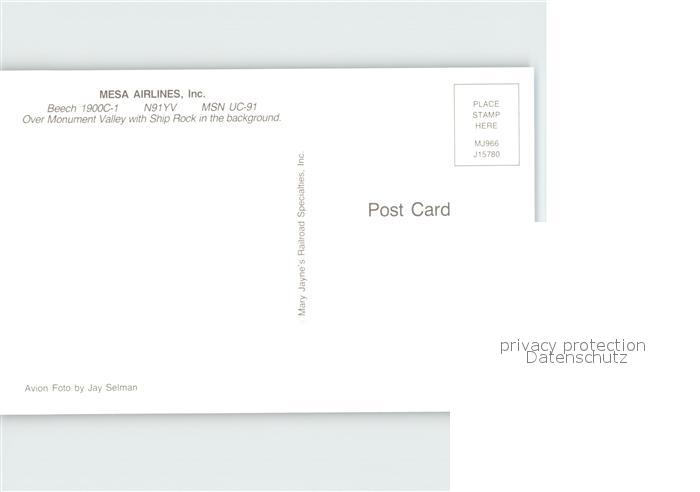 Flugzeuge Zivil Mesa Airlines Beech 1900C-1 N91YV MSN UC-91 postalisch nicht gelaufen Erhaltung siehe scans