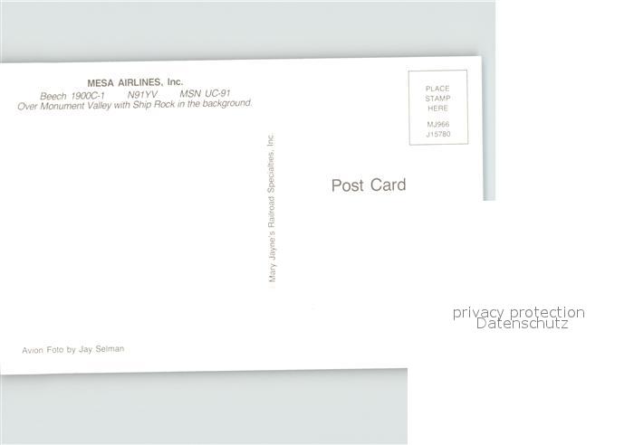 Flugzeuge Zivil Mesa Airlines Beech 1900C-1 N91YV MSN UC-91 postalisch nicht gelaufen Erhaltung siehe scans