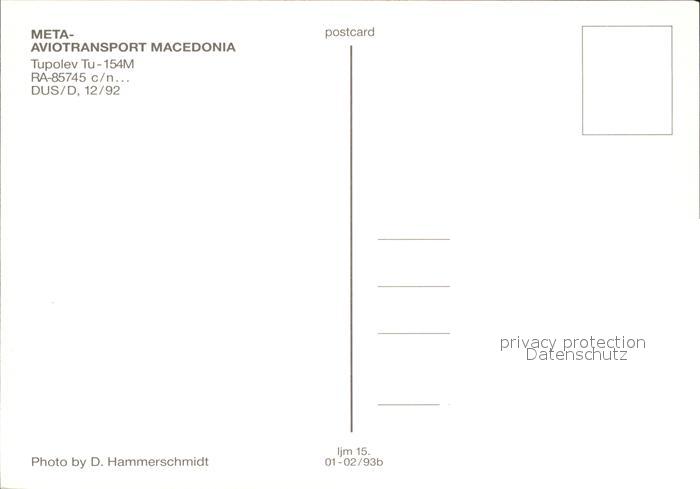 Flugzeuge Zivil META Aviotransport Macedonia Tupolev Tu-154M RA-85745 postalisch nicht gelaufen Erhaltung siehe scans