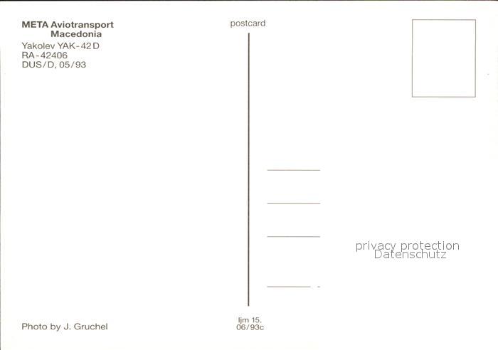 Flugzeuge Zivil Meta Aviotransport Macedonia Yakolev YAK-42D RA-42406 postalisch nicht gelaufen Erhaltung siehe scans