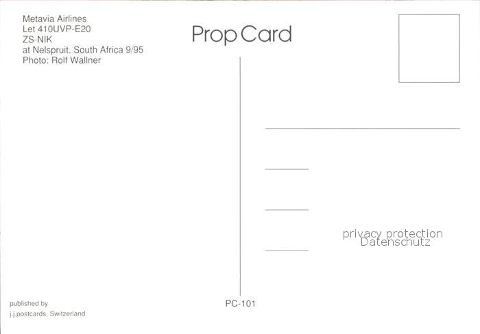 Flugzeuge Zivil Metavia Airlines Let 410UVP-E20 ZS-NIK postalisch nicht gelaufen Erhaltung siehe scans
