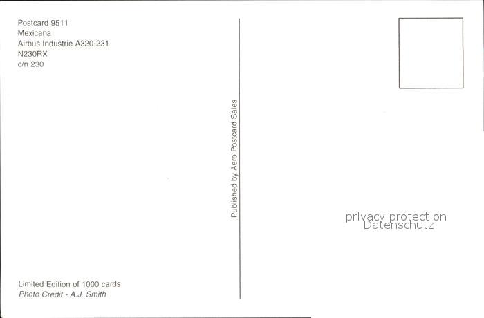 Flugzeuge Zivil Mexicana Airbus Industrie A320-231 N230RX postalisch nicht gelaufen Erhaltung siehe scans