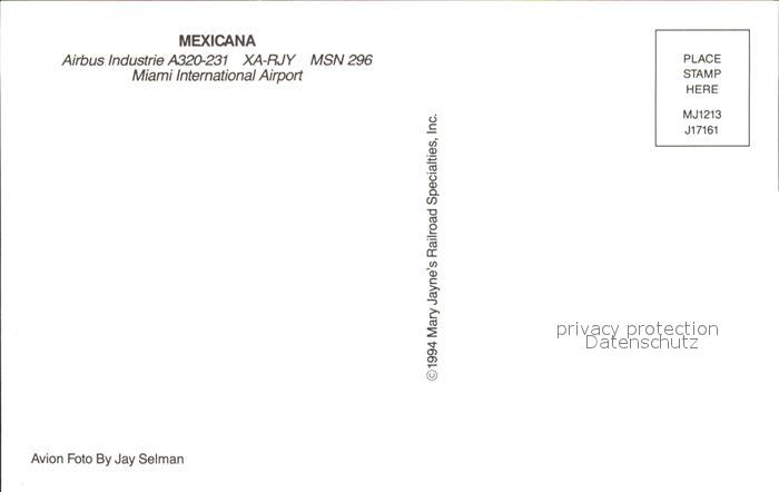 Flugzeuge Zivil Mexicana Airbus Industrie A320-231 XA-RJY MSN 296 postalisch nicht gelaufen Erhaltung siehe scans