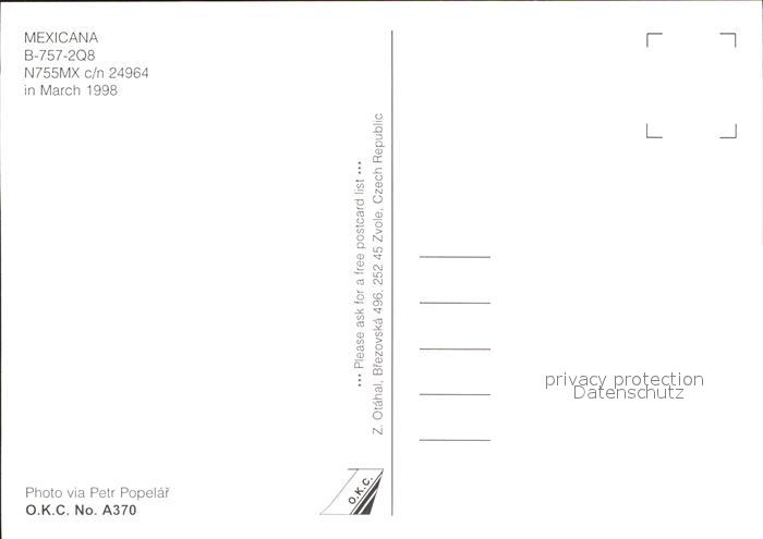 Flugzeuge Zivil Mexicana B-757-2Q8 N755MX c/n 24964 postalisch nicht gelaufen Erhaltung siehe scans