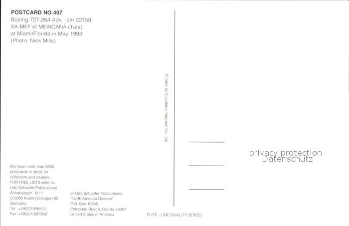 Flugzeuge Zivil Mexicana Boeing 727-264 c/n 22158 XA-MEF postalisch nicht gelaufen Erhaltung siehe scans