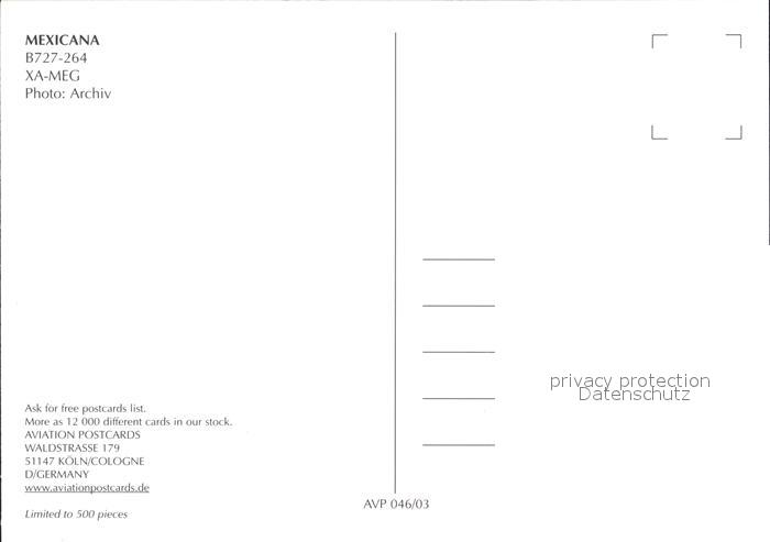 Flugzeuge Zivil Mexicana Boeing B727-264 postalisch nicht gelaufen Erhaltung siehe scans