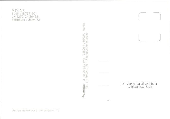 72218186 Flugzeuge Zivil Mey-Air Boeing 737-201 LN-MTC Cn 20453 KatCode 22120000001300