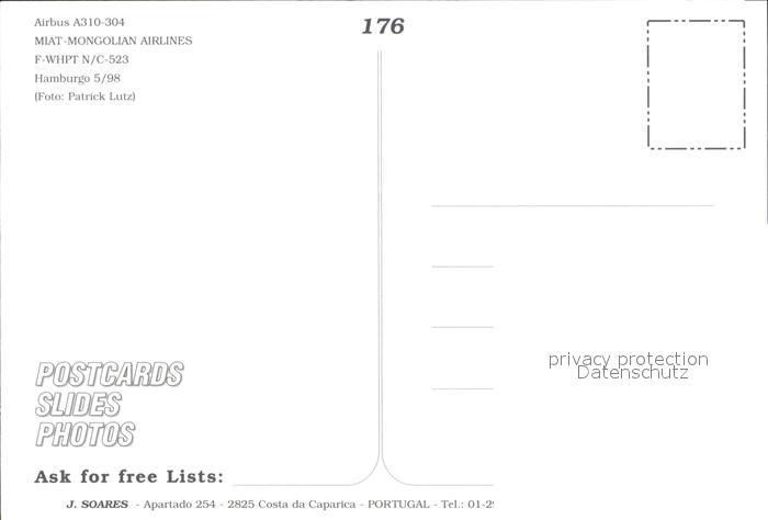 Flugzeuge Zivil MIAT Mongolian Airlines Airbus A310-304 F-WHPT N/C-523 postalisch nicht gelaufen Erhaltung siehe scans