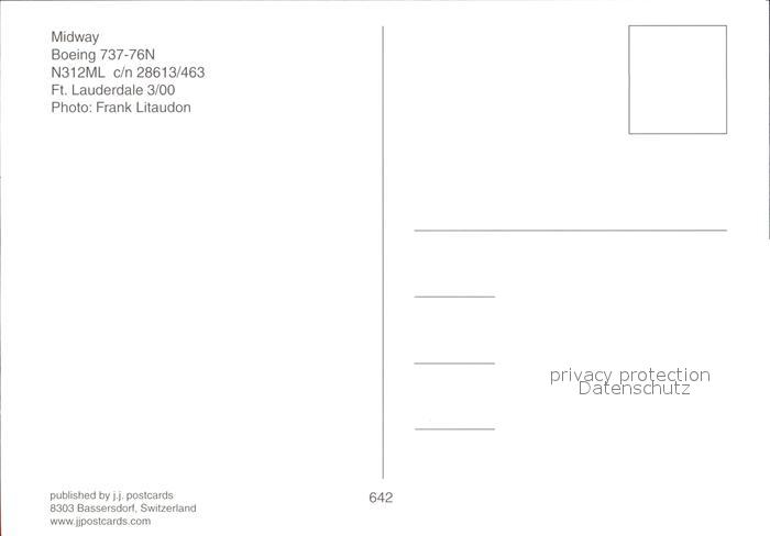 Flugzeuge Zivil Midway Boeing 737-76N N312ML c/n 28613/463 postalisch nicht gelaufen Erhaltung siehe scans