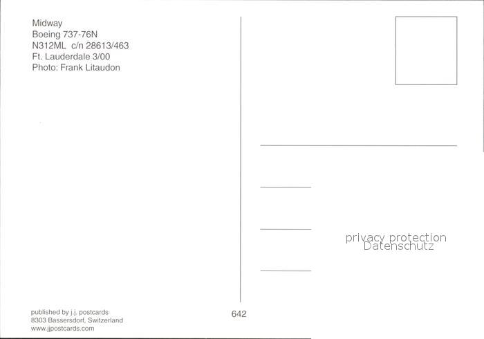 Flugzeuge Zivil Midway Boeing 737-76N N312ML c/n 28613/463 postalisch nicht gelaufen Erhaltung siehe scans
