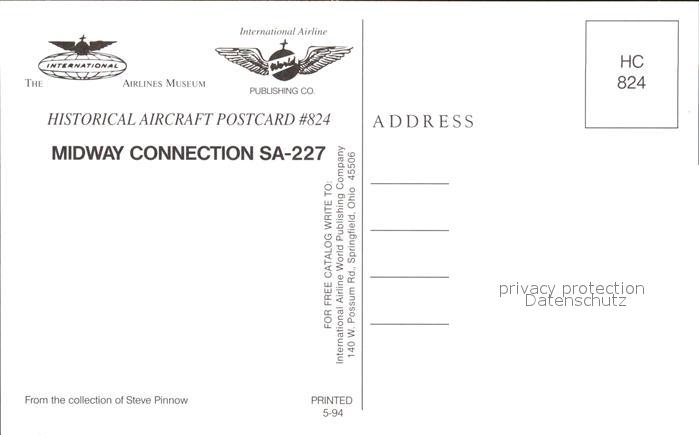 Flugzeuge Zivil Midway Connection SA-227 N3022L postalisch nicht gelaufen Erhaltung siehe scans