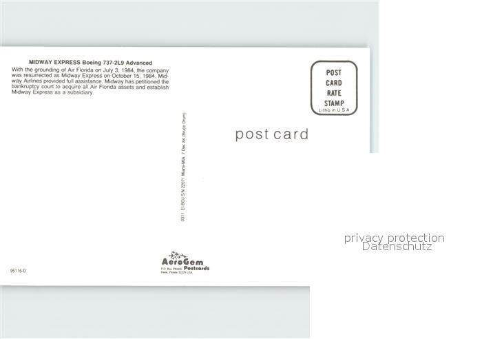 Flugzeuge Zivil Midway Express Boeing 737-2L9 Advanced postalisch nicht gelaufen Erhaltung siehe scans