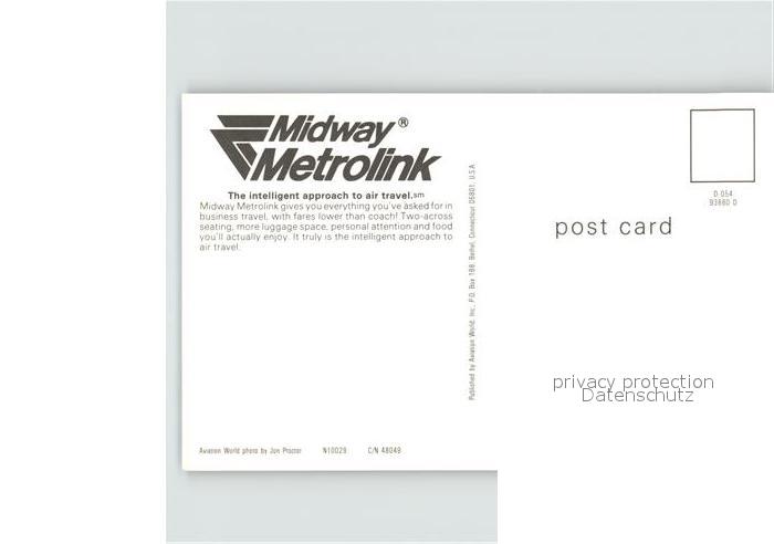 Flugzeuge Zivil Midway Metrolink N10029 C/N 48049 postalisch nicht gelaufen Erhaltung siehe scans