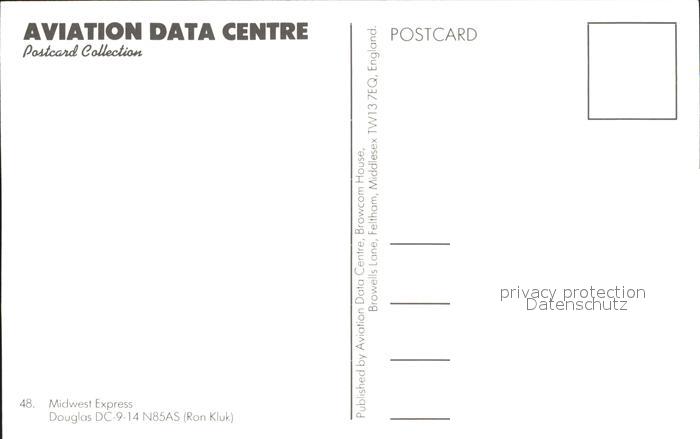 Flugzeuge Zivil Midwest Express Douglas DC-9-14 N85AS postalisch nicht gelaufen Erhaltung siehe scans