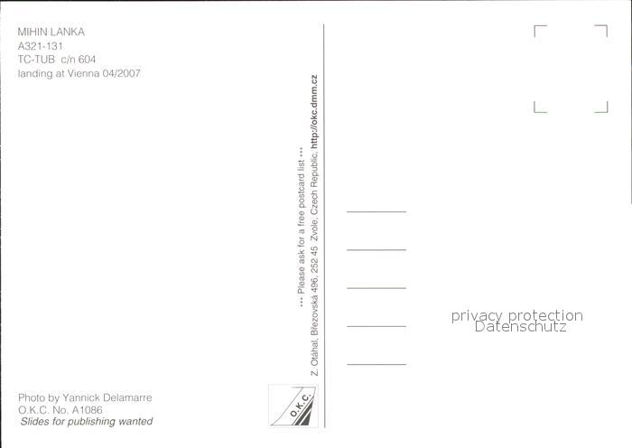 Flugzeuge Zivil Mihin Lanka A321-131 TC-TUB c/n 604 postalisch nicht gelaufen