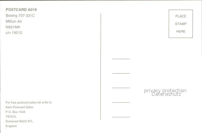 Flugzeuge Zivil Million Air Boeing 707-331C N851MA c/n 19212 postalisch nicht gelaufen Erhaltung siehe scans