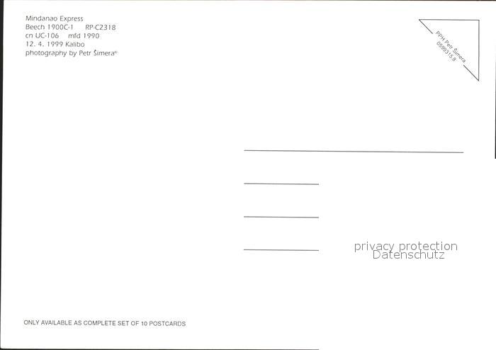 Flugzeuge Zivil Mindanao Express Beech 1900C-1 RP-C2318 cn UC-106 postalisch nicht gelaufen Erhaltung siehe scans