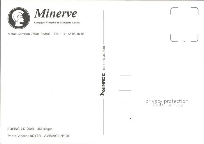 Flugzeuge Zivil Minerve Boeing 747-200B postalisch nicht gelaufen Erhaltung siehe scans
