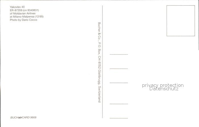 Flugzeuge Zivil Moldavian Airlines Yakovlev 40 ER-87359 cn 9340831 postalisch nicht gelaufen Erhaltung siehe scans