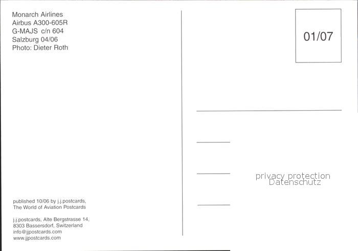 Flugzeuge Zivil Monarch Airlines Aibus A300-605R G-MAJS c/n 604 postalisch nicht gelaufen Erhaltung siehe scans
