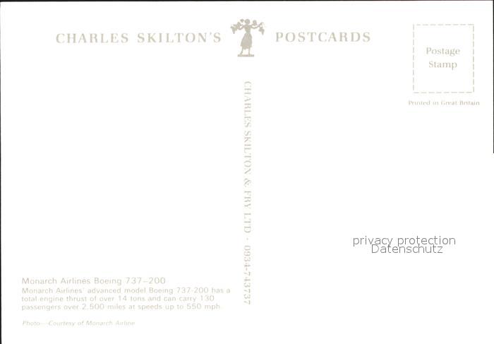 Flugzeuge Zivil Monarch Airlines Boeing 737-200 postalisch nicht gelaufen Erhaltung siehe scans