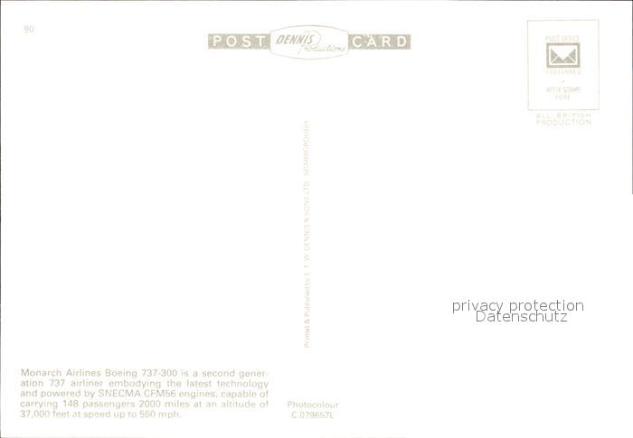 Flugzeuge Zivil Monarch Airlines Boeing 737-300 postalisch nicht gelaufen Erhaltung siehe scans