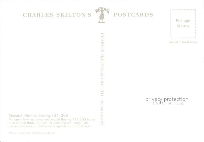Flugzeuge Zivil Monarch Airlines Boeing 737 postalisch nicht gelaufen Erhaltung siehe scans