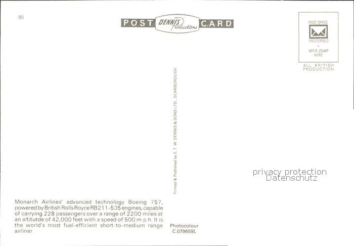 Flugzeuge Zivil Monarch Airlines Boeing 757-200 postalisch nicht gelaufen Erhaltung siehe scans