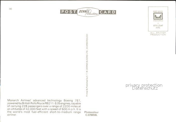 Flugzeuge Zivil Monarch Airlines Boeing 757-200 postalisch nicht gelaufen Erhaltung siehe scans