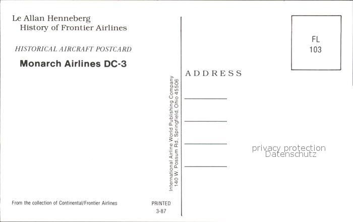Flugzeuge Zivil Monarch Airlines DC-3 postalisch nicht gelaufen Erhaltung siehe scans