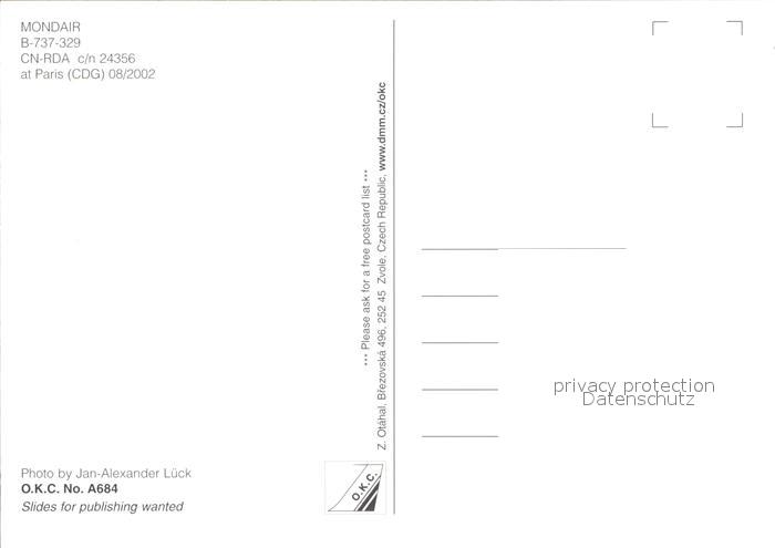 Flugzeuge Zivil Mondair Boeing B-737-329 Paris (CDG) postalisch nicht gelaufen Erhaltung siehe scans