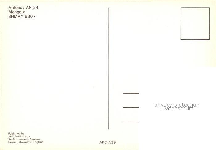 Flugzeuge Zivil Mongolia Antonov AN 24 BHMAY 9807 postalisch nicht gelaufen Erhaltung siehe scans