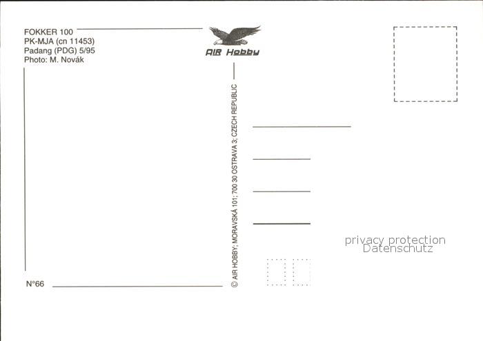 Flugzeuge Zivil Morpati Fokker 100 PK-MJA cn 11453 postalisch nicht gelaufen Erhaltung siehe scans