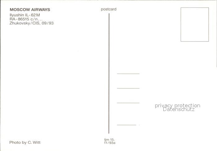 Flugzeuge Zivil Moscow Airways Ilyushin IL-62M RA-86515 postalisch nicht gelaufen Erhaltung siehe scans