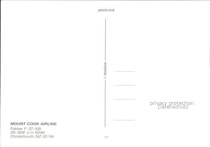 Flugzeuge Zivil Mount Cook Airline Fokker F-27-100 ZK-BXF c/n 10185 postalisch nicht gelaufen Erhaltung siehe scans