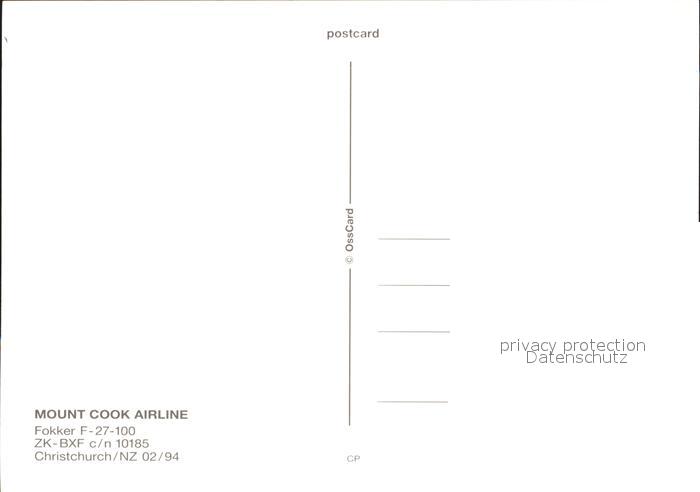 Flugzeuge Zivil Mount Cook Airline Fokker F-27-100 ZK-BXF c/n 10185 postalisch nicht gelaufen Erhaltung siehe scans