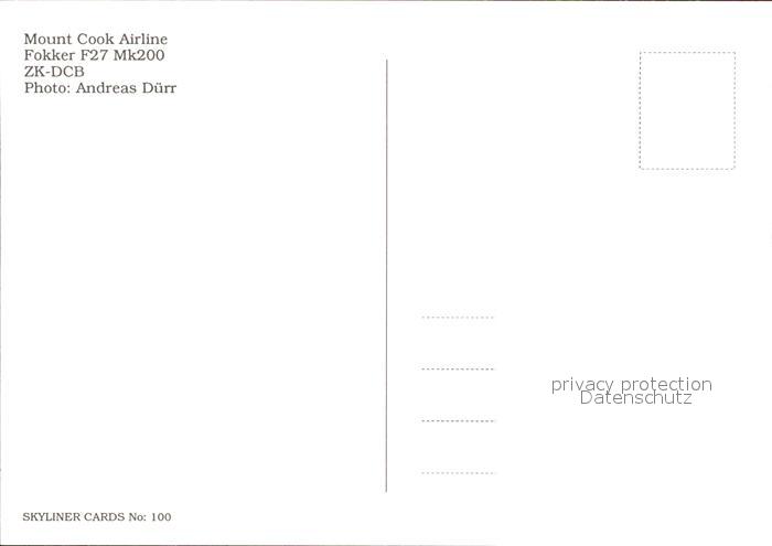 Flugzeuge Zivil Mount Cool Airline Fokker F27 Mk200 ZK-DCB postalisch nicht gelaufen