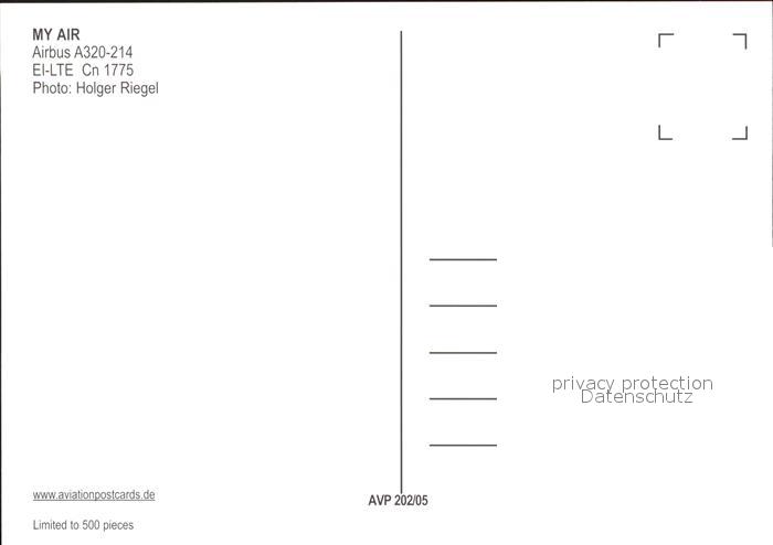 Flugzeuge Zivil My Air A320-214 EI-LTE Cn 1775 postalisch nicht gelaufen Erhaltung siehe scans