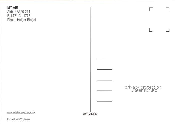 Flugzeuge Zivil My Air Airbus A320-214 EI-LTE Cn 1775 postalisch nicht gelaufen Erhaltung siehe scans
