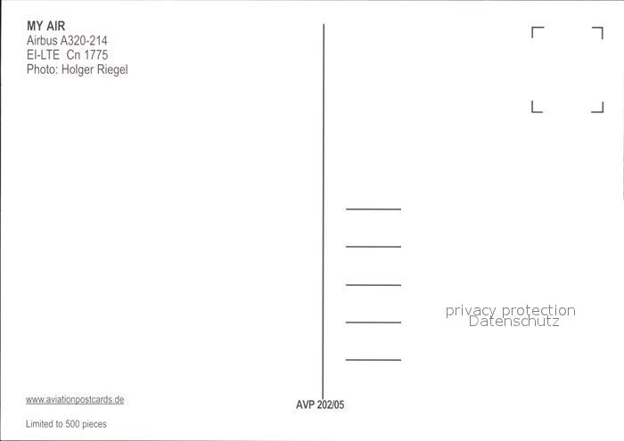 Flugzeuge Zivil My Air Airbus A320-214 EI-LTE Cn 1775 postalisch nicht gelaufen Erhaltung siehe scans
