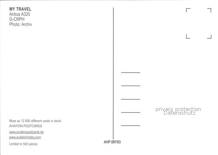 Flugzeuge Zivil My Travel Airbus A320 G-CRPH postalisch nicht gelaufen Erhaltung siehe scans