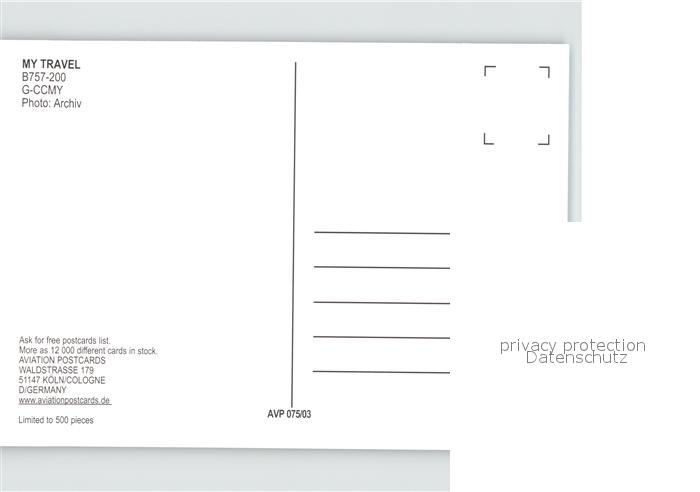 Flugzeuge Zivil My Travel B757-200 G-CCMY postalisch nicht gelaufen Erhaltung siehe scans