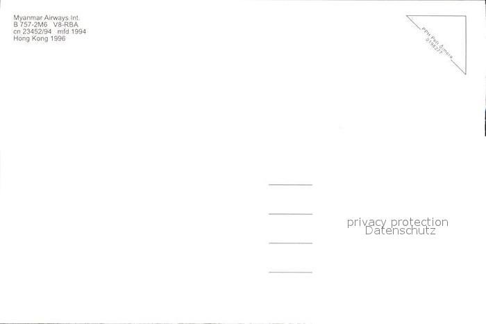 Flugzeuge Zivil Myanmar Airways B 757-2M6 V8-RBA cn 23452/94 mfd 1994 postalisch nicht gelaufen Erhaltung siehe scans