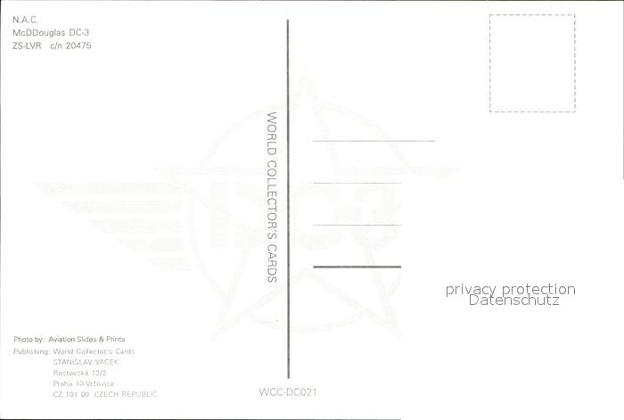Flugzeuge Zivil N.A.C. McDDouglas DC-3 ZS-LVR c/n 20475 postalisch nicht gelaufen Erhaltung siehe scans