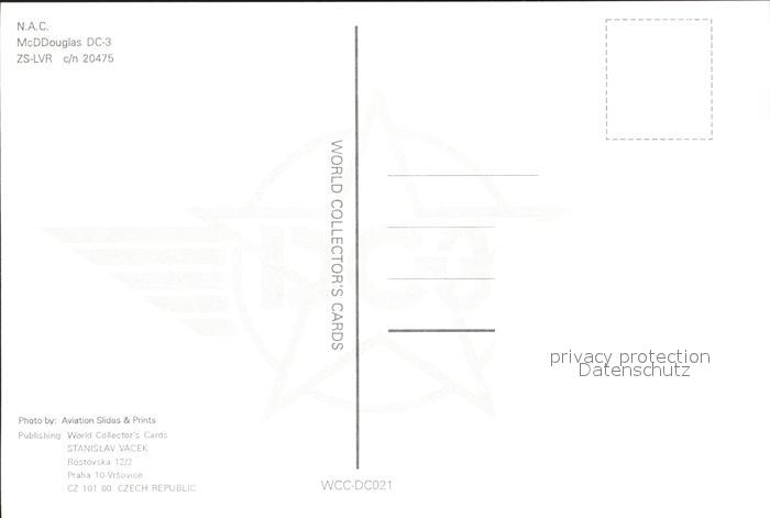 Flugzeuge zivil N.Ac. McDDouglas DC-3 postalisch nicht gelaufen Erhaltung siehe scans