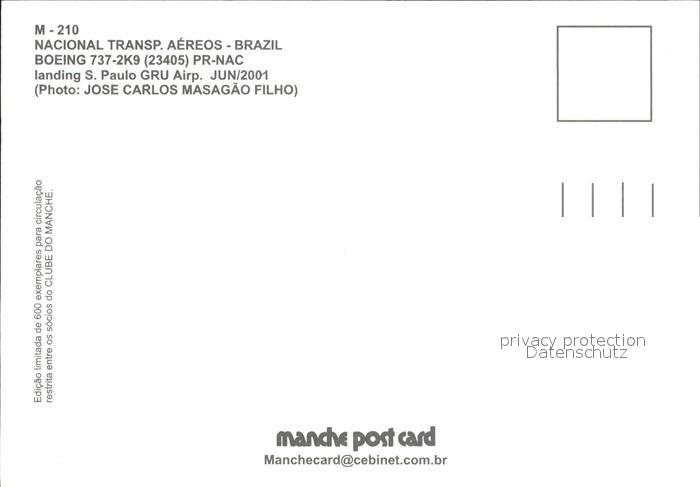 Flugzeuge Zivil Nacional Boeing 737-2K9 PR-NAC postalisch nicht gelaufen Erhaltung siehe scans