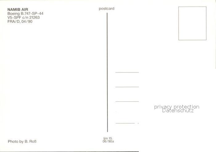 Flugzeuge Zivil Namib Air Boeing 747-SP-44 V5-SPF c/n 21263 postalisch nicht gelaufen Erhaltung siehe scans