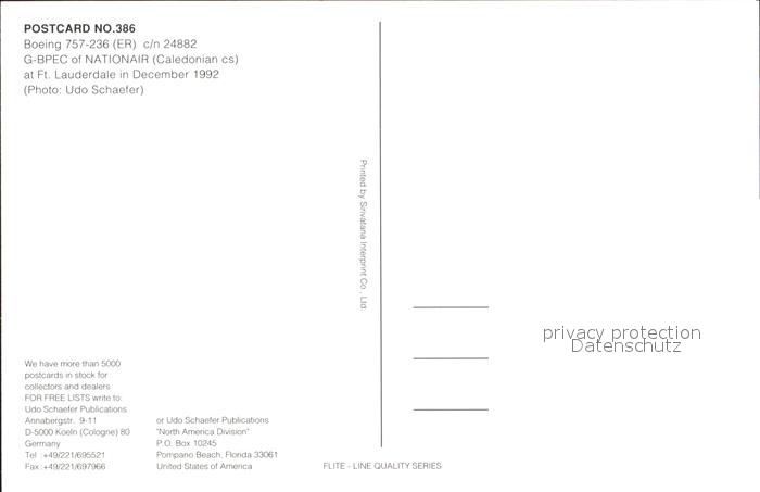 Flugzeuge Zivil Nationair Boeing 757-236 c/n 24882 G-BPEC postalisch nicht gelaufen Erhaltung siehe scans